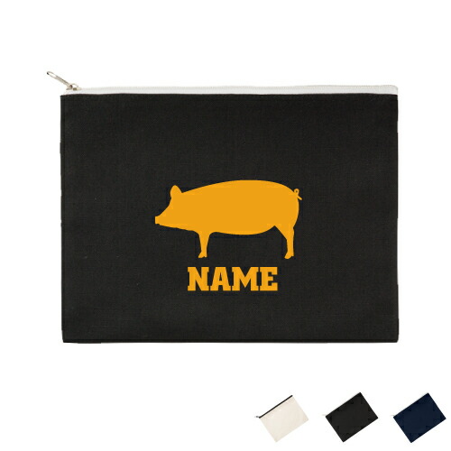 「ブタ」名入れフラットポーチLサイズ ポーチ マルチケース 小物入れ 収納 おもちゃバッグ クラッチバッグ 推し活 名入れ 名入れグッズ メンズ レディース オリジナル お揃い オーダーメイド部活 お名前 豚、Pig、豚肉、ポーク 習い事 サークル 文化部 ピクトグラム