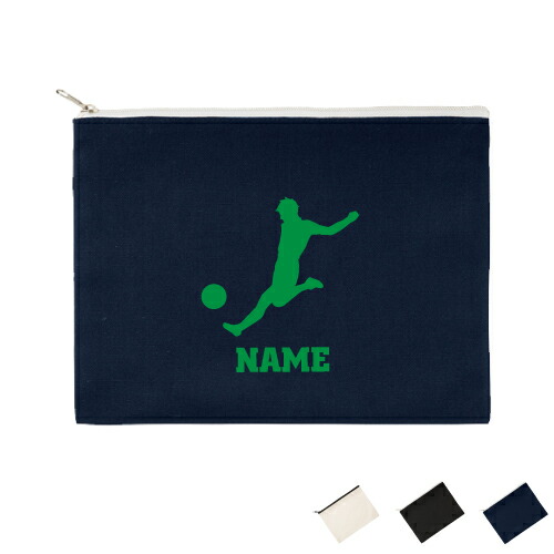 「サッカープレイヤー」名入れフラットポーチLサイズ ポーチ マルチケース 小物入れ 収納 おもちゃバッグ クラッチバッグ 推し活 メンズ レディース お揃い オーダーメイド 部活 スポーツ お名前 サッカー 蹴球 品グッズ 記念品 ギフト ピクトグラム