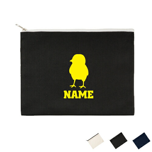 「ひよこ」名入れフラットポーチLサイズ ポーチ マルチケース 小物入れ 収納 おもちゃバッグ メンズ レディース オリジナル お揃い オーダーメイド部活 お名前 雛、ニワトリ、ヒナ鳥 習い事 サークル 文化部 ピクトグラム