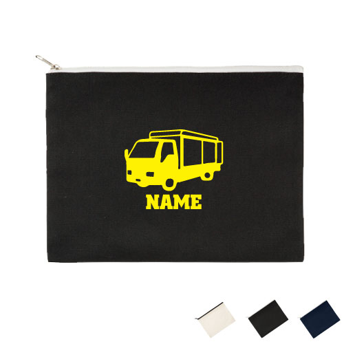 運搬車 名入れフラットポーチLサイズ ポーチ マルチケース 小物入れ 収納 おもちゃバッグ クラッチバッグ 推し活 名入れ 名入れグッズ メンズ レディース オリジナル お揃い オーダーメイド 乗り物 車 はたらく 趣味