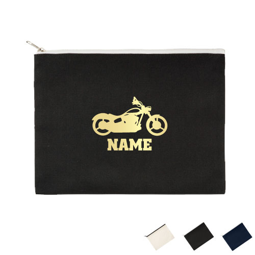 バイク5 名入れフラットポーチLサイズ ポーチ マルチケース 小物入れ 収納 おもちゃバッグ クラッチバッグ 推し活 名入れ 名入れグッズ メンズ レディース オリジナル お揃い オーダーメイド 乗り物 チーム 単車 趣味