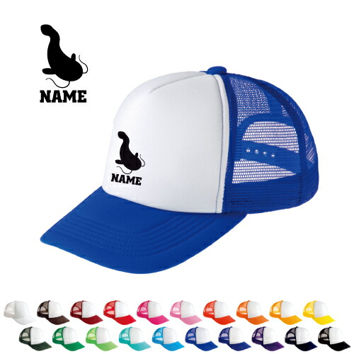 「なまず」名入れメッシュキャップ オリジナル セミオーダーメイド 名入れ 部活 サークル 鯰、淡水魚