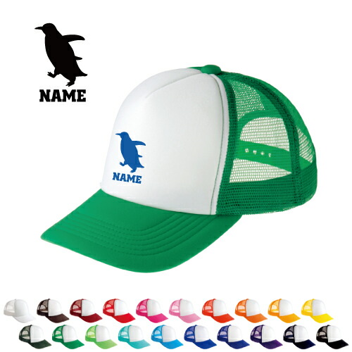 「ペンギン」名入れメッシュキャップ オリジナル セミオーダーメイド 名入れ 部活 サークル 人鳥、Penguin