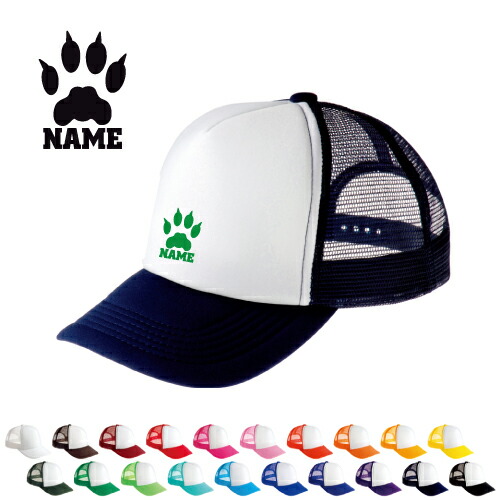足跡4 名入れメッシュキャップ オリジナル セミオーダーメイド 名入れ 部活 サークル チームウェア お揃い 記念 クラブ 猫 ネコ ねこ キャット 肉球