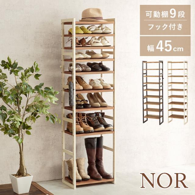 シューズラック スリム シューズボックス 下駄箱 靴箱 おしゃれ 北欧 木製 9段 薄型 収納 大容量 安い diy 狭い玄関 省スペース 玄関収納 スリッパ 幅45cm ノア 靴 スニーカー ブーツ ハイヒール シューズスタンド 靴収納