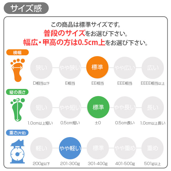 甲高、幅広の方→「0.5cm大きめ」