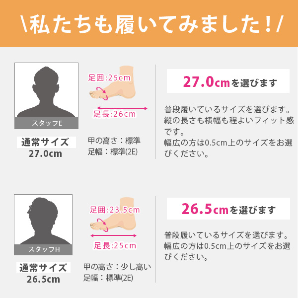 取り扱いサイズ:25cm 25.5cm 26cm 26.5cm 27cm