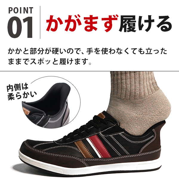 スニーカー メンズ 靴 スリッポン ブラック 黒 ホワイト 白 軽量 軽い 履きやすい サイドゴア 歩きやすい 疲れない ハンズフリー 手を使わずに履ける 1秒で履ける おしゃれ かっこいい スパッとシューズ ラーキンス LARKINS L-689