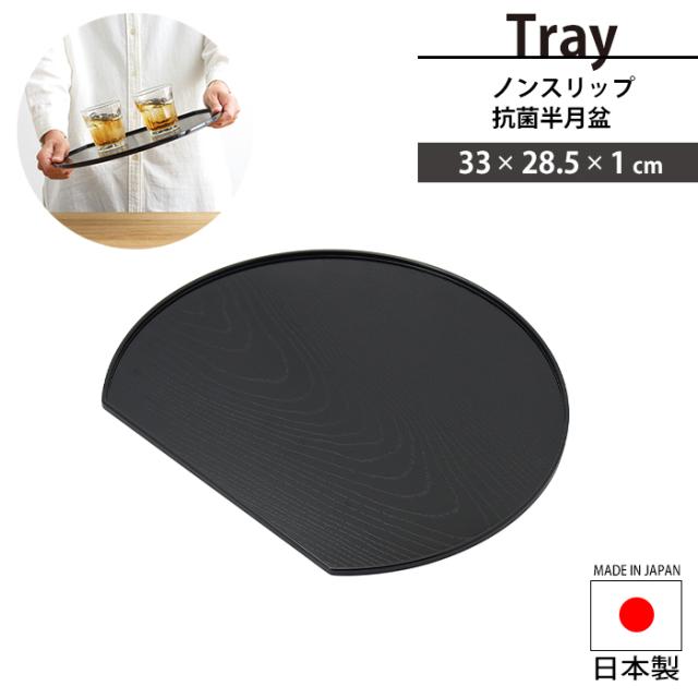 | おぼん トレー 滑りにくい トレイ 抗菌トレー 幅33 奥行28.5 盆 お盆 ランチョンマット ランチョントレー 薄い 食卓 銘々膳 おもてなし 普段使い 日本製 国産 ノンスリップ 抗菌 半月盆 |