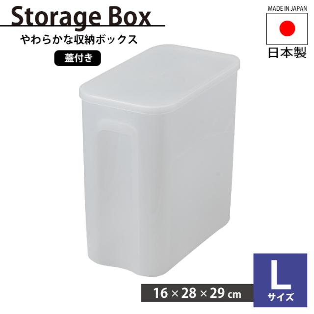 キーワード: 収納ボックス L 幅16 奥行28 高さ29 ストッカー 収納 箱 保管 ボックス 保存ボックス やわらかい 扱いやすい 持ち手付き 蓋付き 積み重ね 収納 パスタ そば 乾麺 かつお節 焼きのり 乾物 日本製 国産 やわらかな 収納ボックス L 蓋付