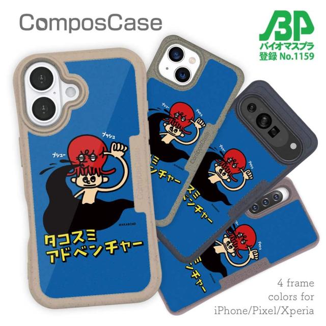 コンポスケース & 着せ替え デザインシート セット Google Pixel9a Pixel9 Pro XL Pixel8a Pixel8 Pro Xperia 10 V ケース 背面 生分解性 4色 ワカボンド WAKAMAKAシリーズ タコスミアドベンチャー