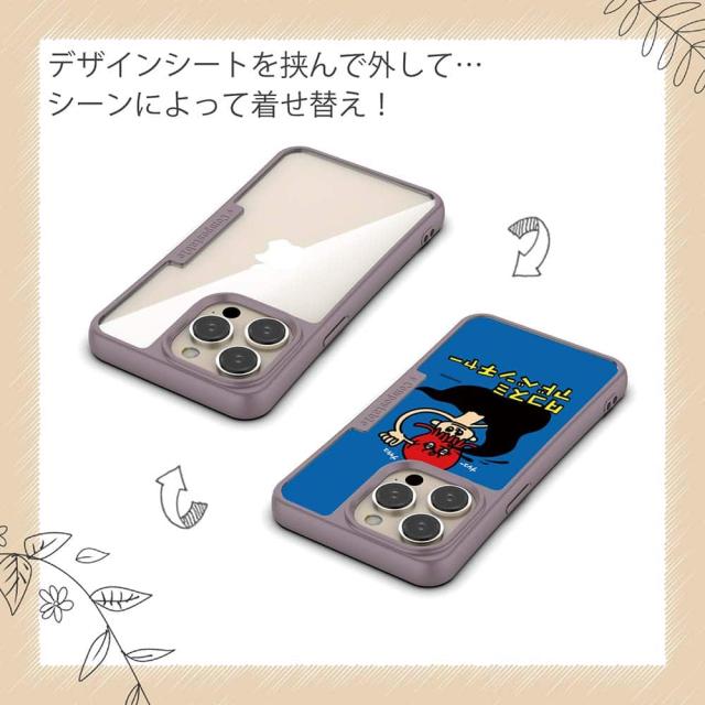 | ケースについて | 背面の内側に入れ込むデザインシートで、シーンに合わせて着せ替え可能。また、グリップしやすいクッション構造で、本体重量は約35gと軽減化を実現。さらにSライン形状で、究極に押しやすいボタン設計(切り込みが入ることで押し込む力を軽減)、背面のカメラ・レンズを保護する高さ設計となっております。生分解性プラスチック素材ながらも着脱もしやすく、割れない・指紋防止加工を施しています。 |