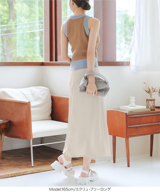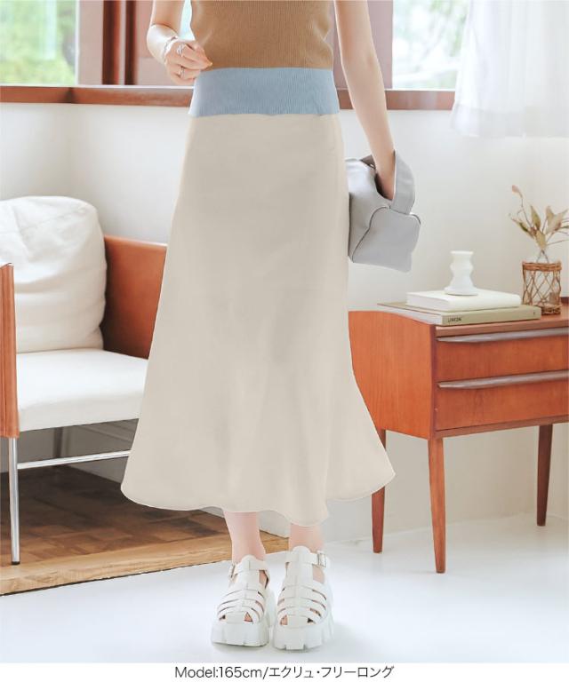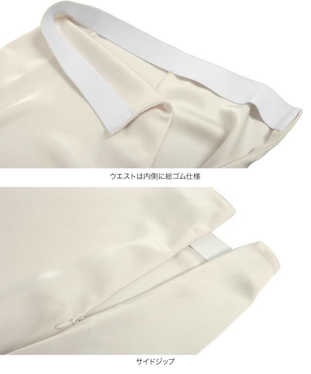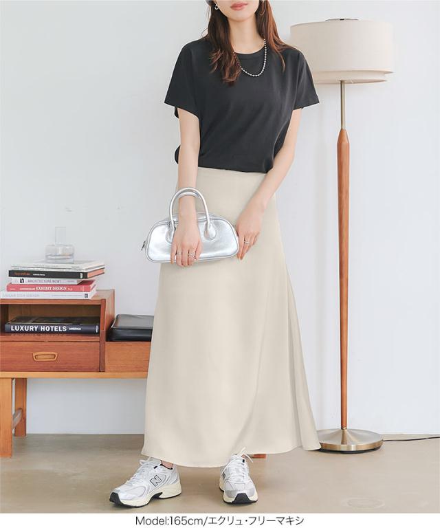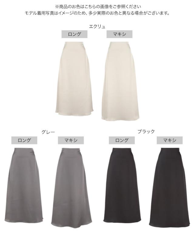 軽やかな抜け感をプラスしてくれるサテンスカート。ウエストは内側ゴム仕様で楽な着心地ながらも、サイドファスナーで着脱が簡単のなも嬉しいポイントです。ロングとマキシの2丈展開で幅広いスタイルの方にマッチします。スニーカーでカジュアルに合わせたり、ミュールやブーツできれいめに合わせたりと、幅広い着こなしが可能です◎【素材・サイズ感】微光沢のサテン素材を使用し、高級感のある1枚。なめらかで落ち感のある生地は、すっきりとスタイルアップして見せてくれます。通年ご着用いただけ、二ットやシャツなど、合わせるトップスを選ばず着回しの効くアイテムです。※キャンセル/変更不可※※お届けまでの日程について