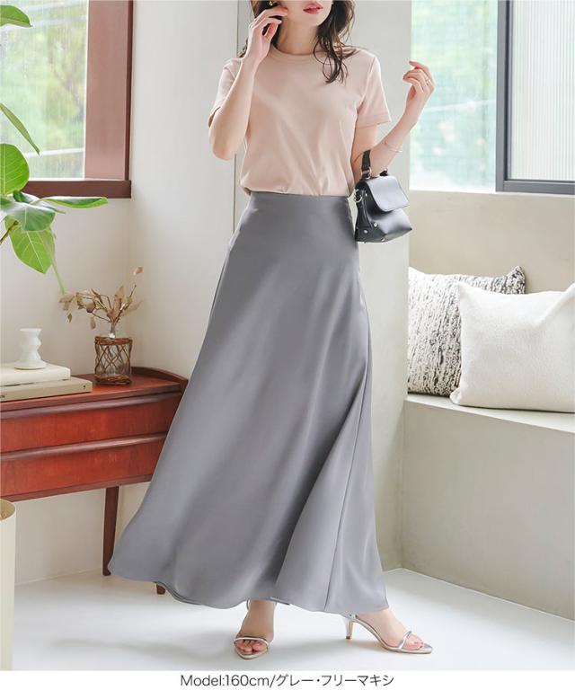 サテンフレアスカート M4091 入荷済 レディース 20代 30代 40代 ボトムス スカート ロング丈 マキシ丈 サテン マキシ ロング ナロースカート マーメイドスカート フレアスカート タイト きれいめ 光沢感 上品 トレンド
