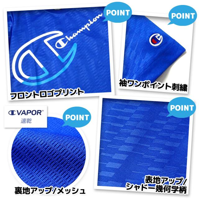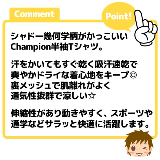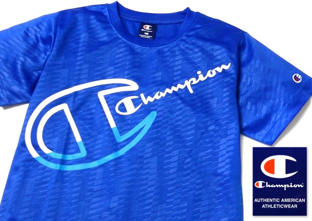 【送料無料】男児 ジュニア 吸水速乾 半袖 Tシャツ Champion/チャンピオン 裏メッシュ シャドー幾何学柄 子供服 男の子 140cm 150cm 160cm td-0788b-bl【メール便対応】