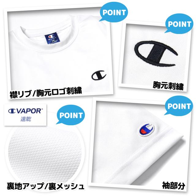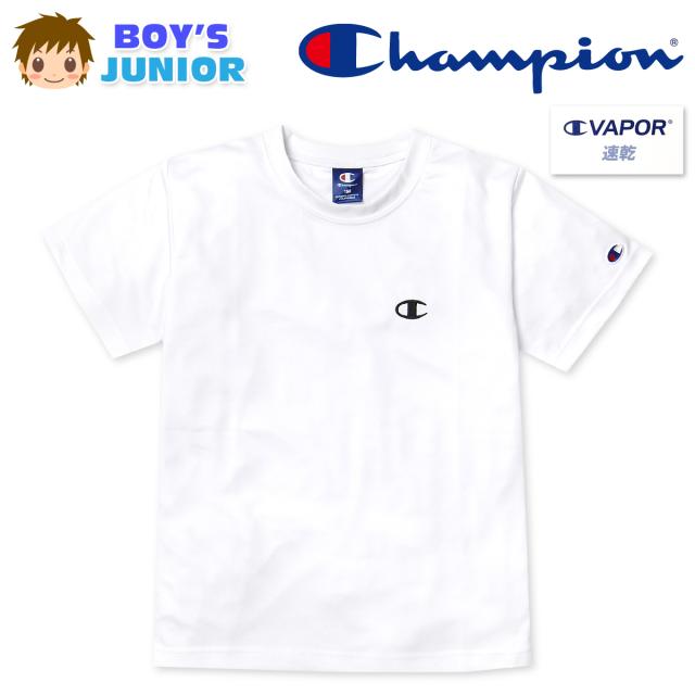【送料無料】男児 ジュニア 吸水速乾 半袖 Tシャツ Champion/チャンピオン 裏メッシュ ロゴ刺繍 子供服 男の子 140cm 150cm 160cm td-0782a-wt【メール便対応】