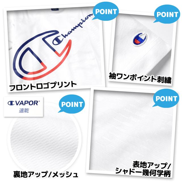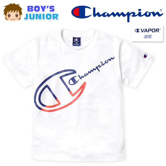 【送料無料】男児 ジュニア 吸水速乾 半袖 Tシャツ Champion/チャンピオン 裏メッシュ シャドー幾何学柄 子供服 男の子 140cm 150cm 160cm td-0788a-wt【メール便対応】