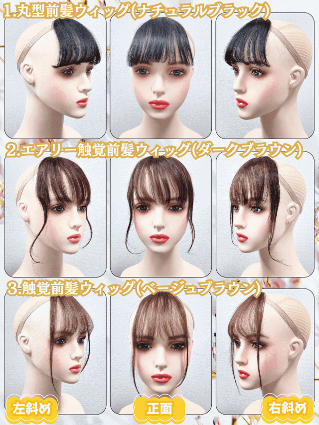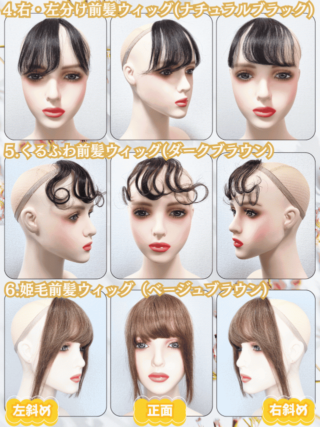 丸型前髪ウィッグ 前髪 13cm / 触覚 0cm / 重さ 約 5.3g 触覚前髪ウィッグ 前髪 13cm / 触覚 25cm / 重さ 約 3.5g エアリー触覚前髪ウィッグ 前髪 14cm / 触覚 30cm / 重さ 約 7.8g 右分け前髪ウィッグ 前髪 13cm / 触覚 0cm / 重さ 約 3.5g 左分け前髪ウィッグ 前髪 13cm / 触覚 0cm / 重さ 約 3.5g 姫毛前髪ウィッグ 前髪 14cm / 触覚 25cm / 重さ 約 12.0g くるふわ前髪ウィッグ 前髪 13cm / 触覚 25cm / 重さ 約 4.1g |
