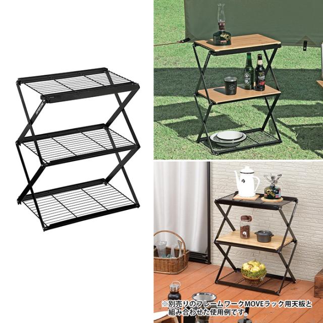 キーワード: ラック サイドラック 3段 シェルフ 棚 作業台 幅46.5 奥行30 高さ58/64 ハイ ロー 高さ2段階 折りたたみ ラック キャンプ用品 収納棚 バーベキュー キャンプ アウトドア ガーデニング CAPTAINSTAG キャプテンスタッグ フレームワーク 3段 MOVEラック 460