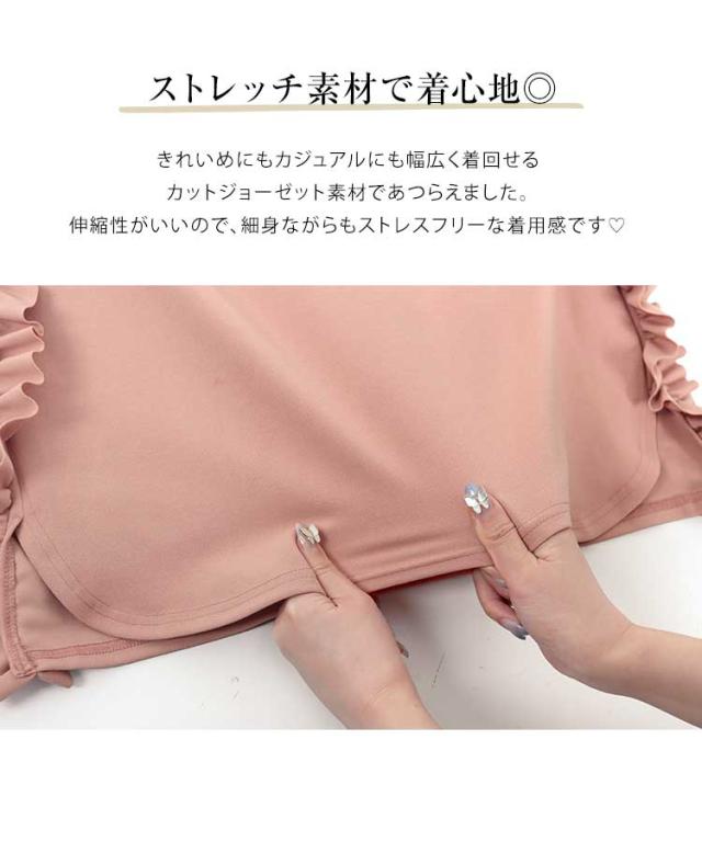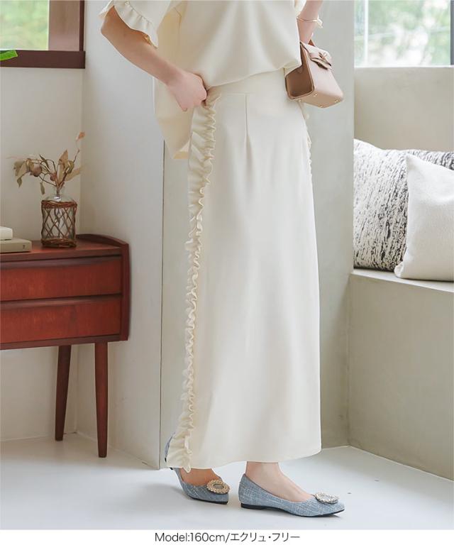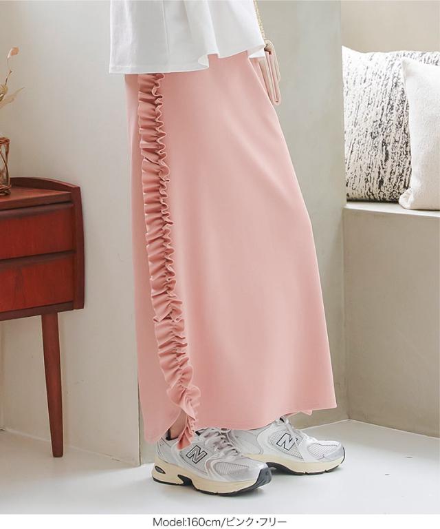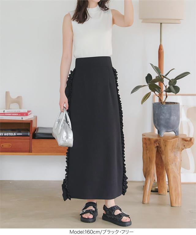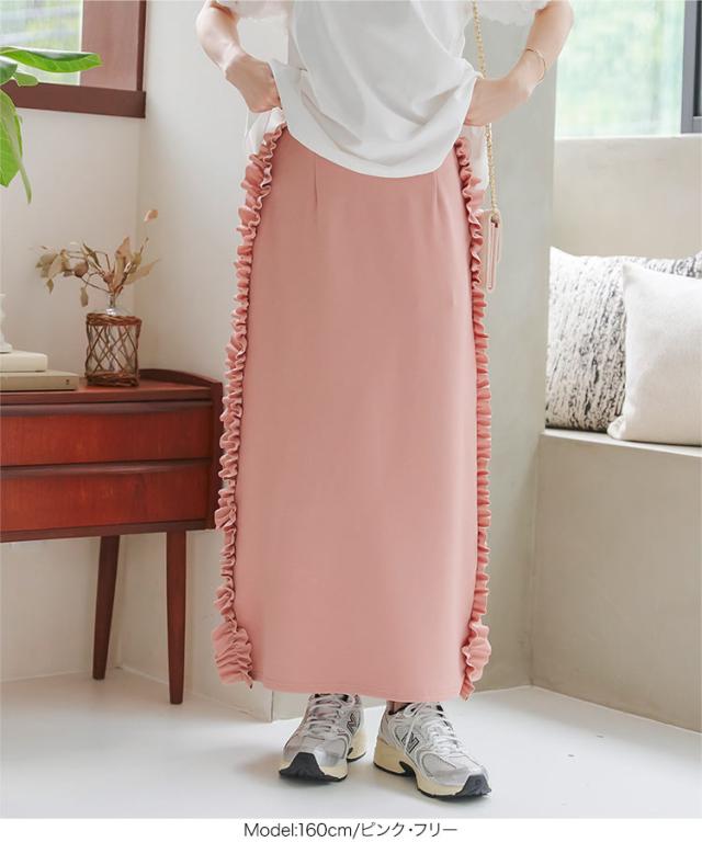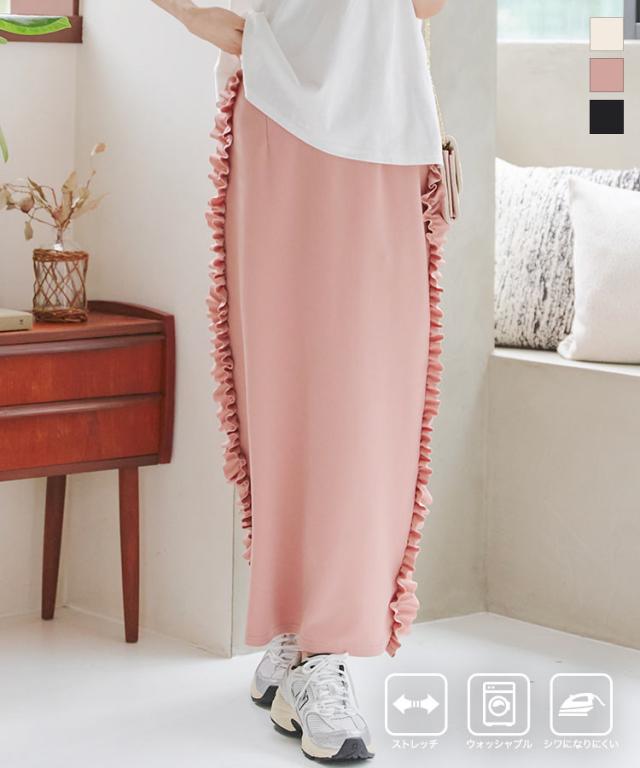 春新作 サイドフリルストレッチスカート M4109 入荷済 フリルスカート タイトスカート ナロースカート ストレッチスカート スリットスカート サイトフリル サイドスリット マキシスカート ロングスカート ボトムス スカート ウエストゴム 楽ちん サイドフリ
