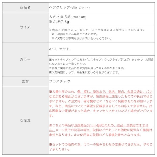 【商品名】小さめ ヘアクリップ(3個セット)