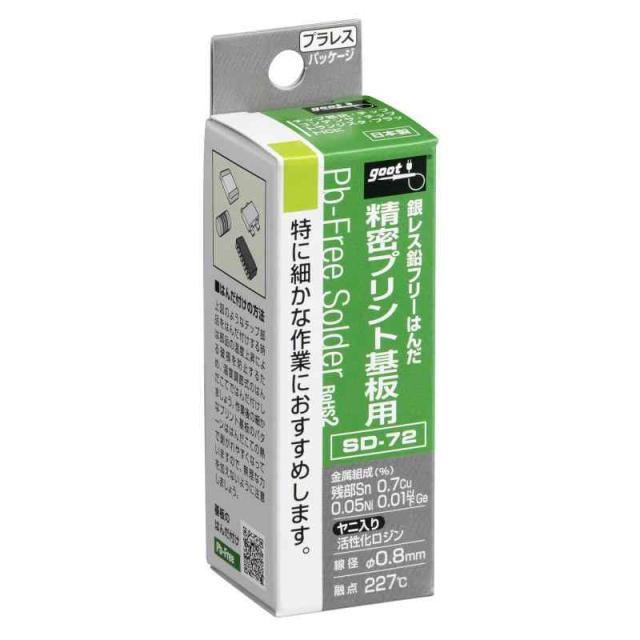 太洋電機産業(goot) 精密プリント基板用 銀レス鉛フリーはんだ Φ0.8mm スズ残部/銅0.7%/ニッケル0.05%/ゲルマニウム0.01%以下 ヤニ入り SD-72
