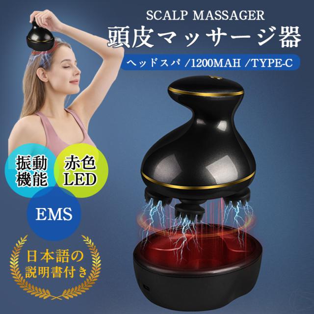 EMS ヘッドスパ 頭皮マッサージ器 ヘッドマッサージ器 頭皮エステ 電動頭皮ブラシ 赤色LED 日本語説明書 防水 乾湿両用 父の日 ギフト 母の日