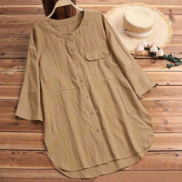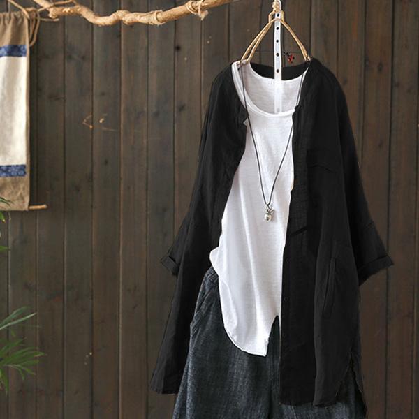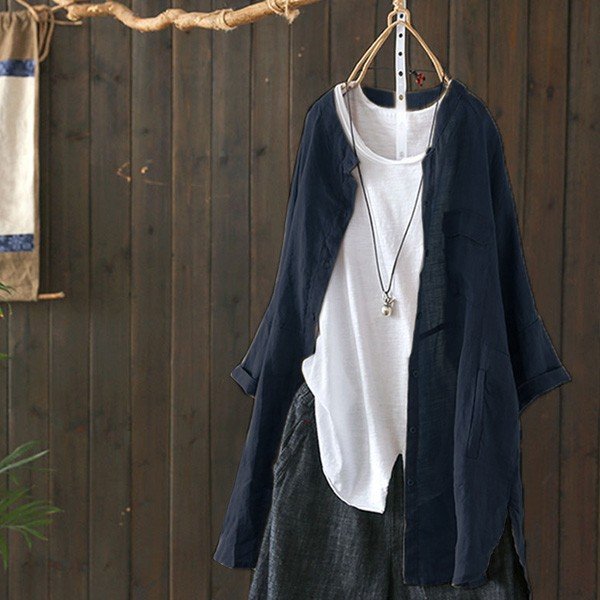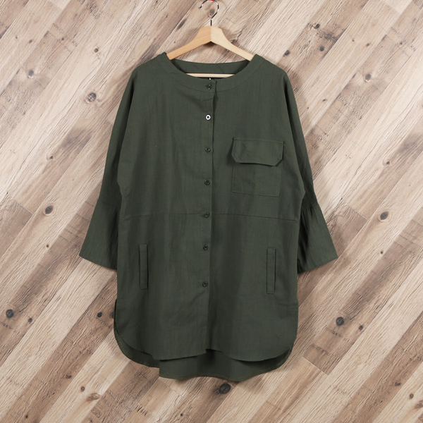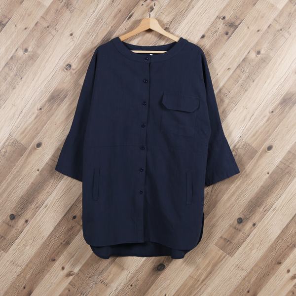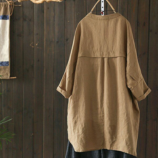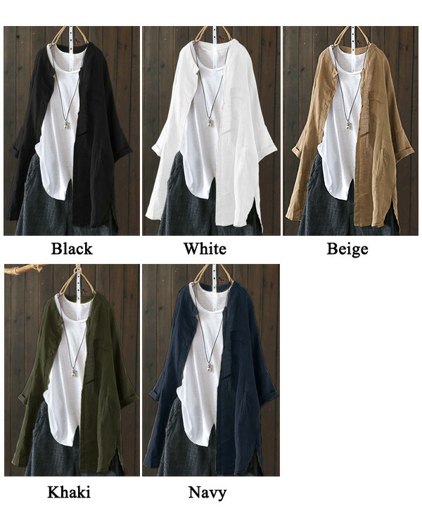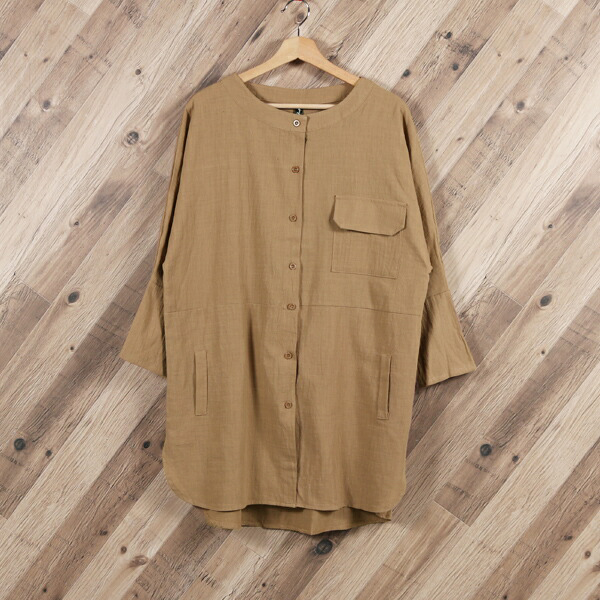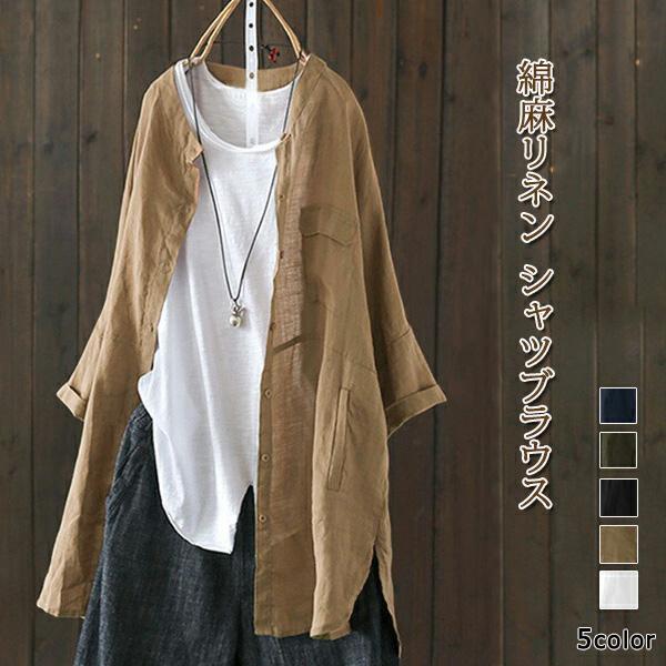 シャツ レディース 七分袖 ブラウス トップス 綿麻 麻混 羽織 秋 長袖 体型カバー ゆったり 送料無料