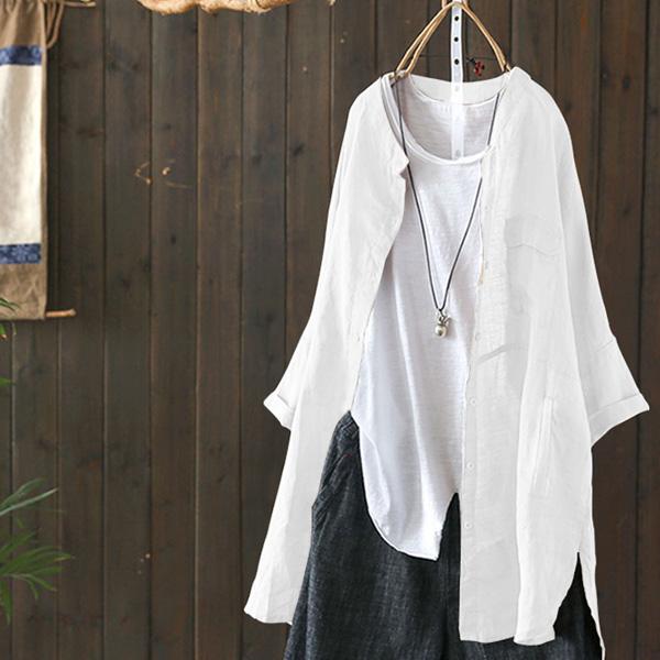 シャツ レディース 七分袖 ブラウス トップス 綿麻 リネン 麻混 羽織 春 夏 秋 ロングシャツ ゆったり レディース ブラウス 長袖 ホワイトシャツ オーバーサイズ 長袖シャツ 清潔感 オフィス 長袖ブラウス 無地 お洒落 アウター 体型カバー 襟付き 前開き ママ ママコーデ 散歩 通学 通勤 ブルー ブラック S M L XL 人気 おすすめ 送料無料