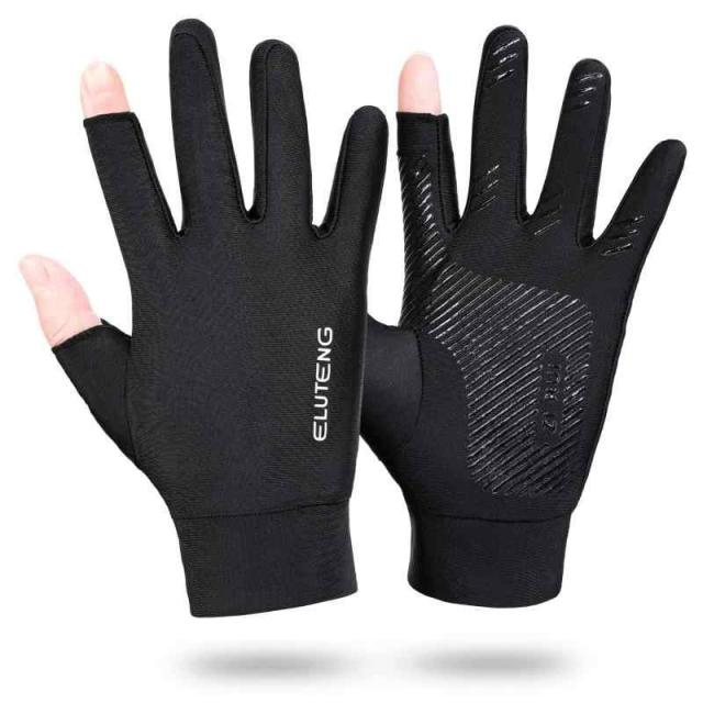 [ELUTENG] グローブ 夏 秋 スマホ対応 手袋 2本切り メンズグローブ 速乾 ランニング 滑りとめ 薄手 UVカット 日焼け止め ブラック アウトドア 通勤 通学 ランニング 釣り Men's Gloves (L, ?)