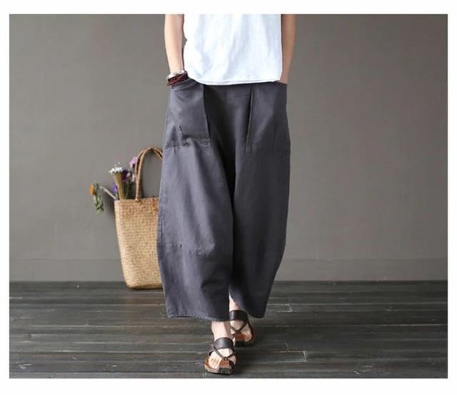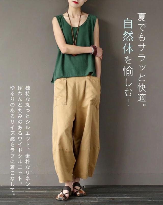 リネン パンツ レディース 涼しい バルーンパンツ アンクル サルエルパンツ 綿麻 イージーパンツ リネン コットン ワイドパンツ 体型カバー ボトムス 森ガール ズボン ゆったり 薄手 リラックス ナチュラル カジュアル きれいめ 春 夏 上品