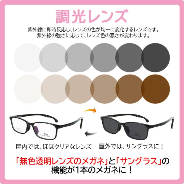 スクエア 度付き 度なし 調光メガネ 薄型 非球面レンズ セット
