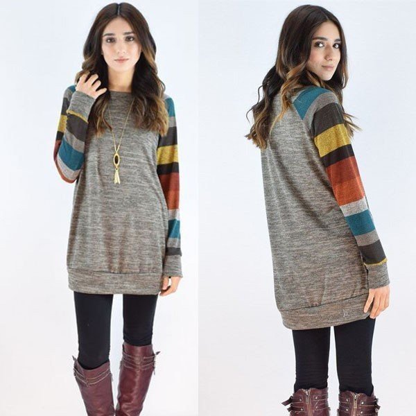 着回し力抜群★袖のボーダーがポイントの大人可愛いチュニック♪
