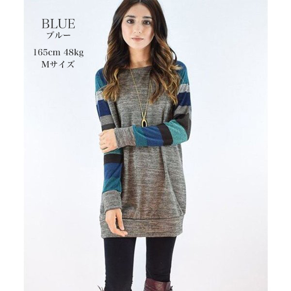チュニック 50代 着こなし レディース トップス ボーダー カラフル ニット