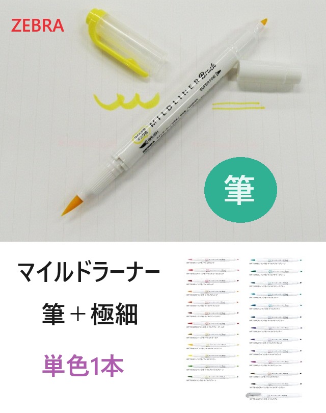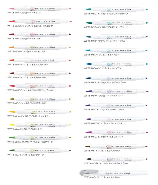 ゼブラ マイルドライナー ブラッシュ筆 WFT8 150円 おだやか色 優しい色合い 25色 単色1本 バラ ノート メール便OK