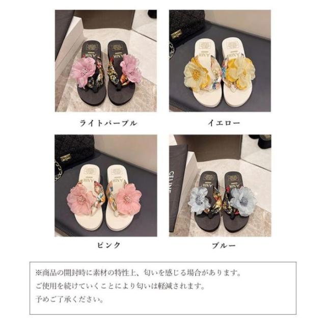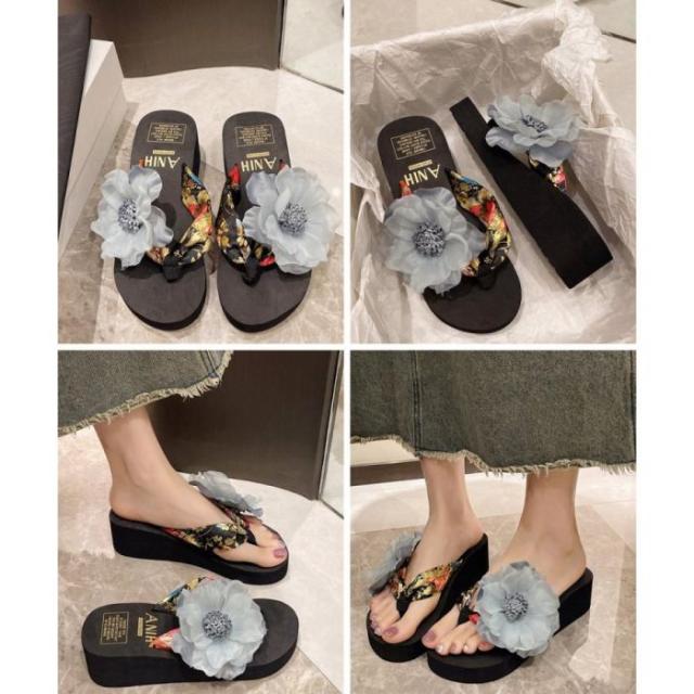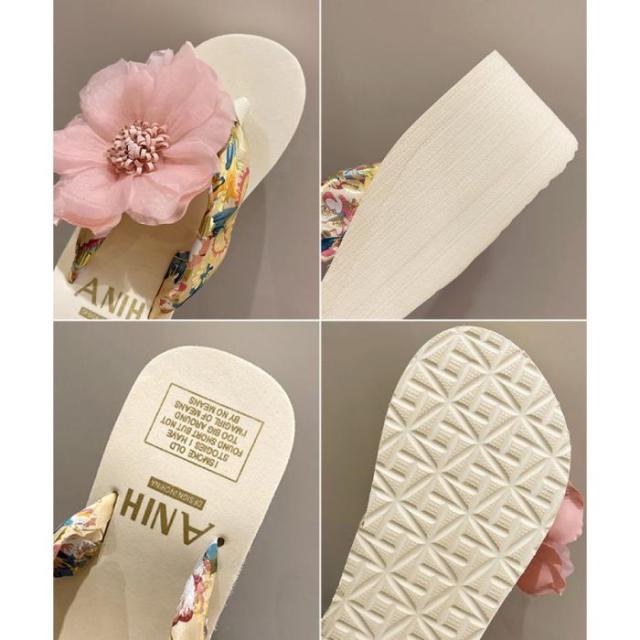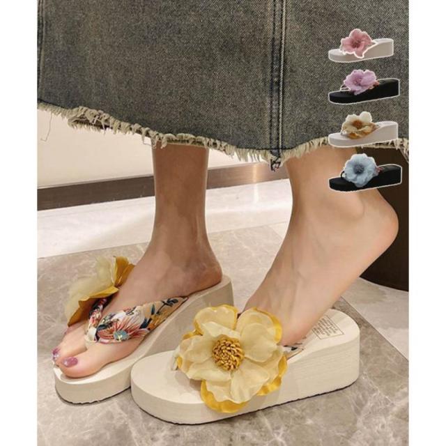 ビーチサンダル 花飾りトングサンダル厚底