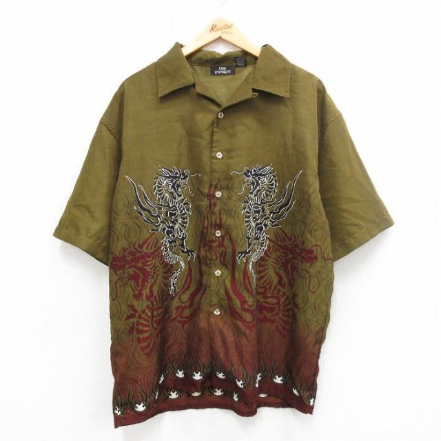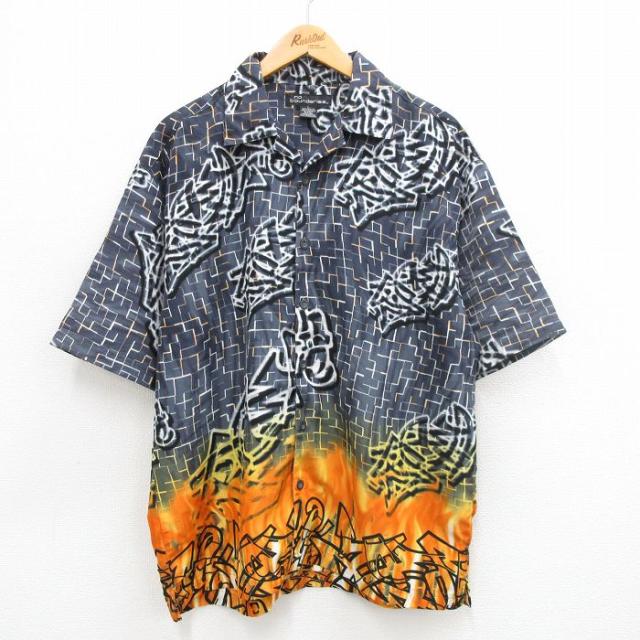 【商品名】 XL★古着 no boundaries 半袖 シャツ メンズ 00年代 00s 開襟 オープンカラー グレー他【spe】