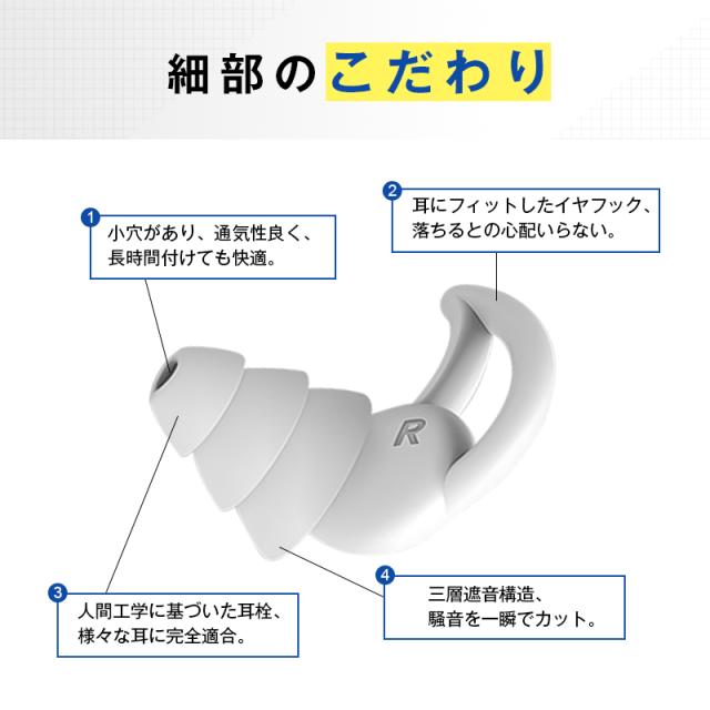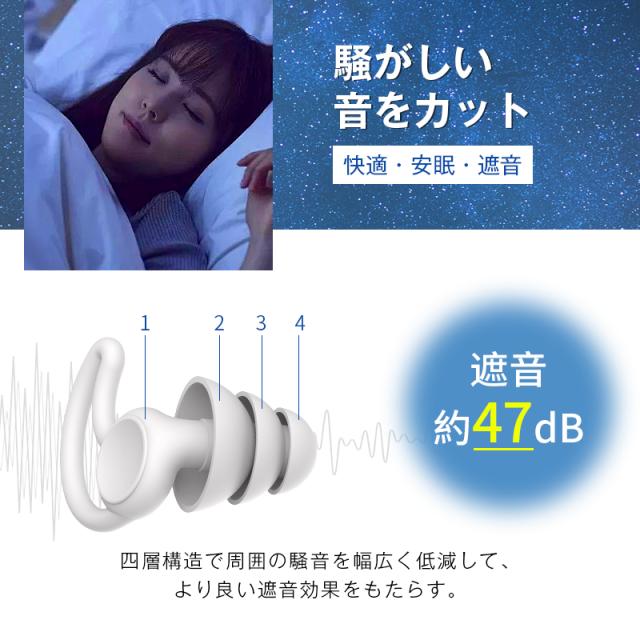 耳栓 睡眠用 静寂な環境を手に入れる 最大47dB音圧減衰 騒音カット 安眠 快眠 集中力UP おしゃれ おすすめ やわらかい 水洗い
