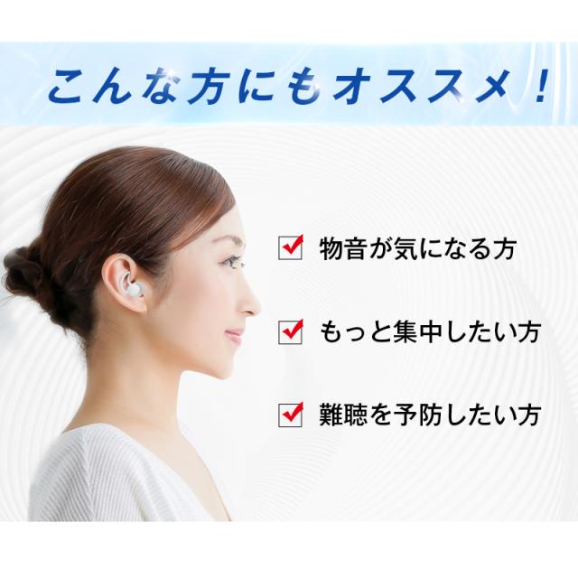 騒音で中々寝付けなかったり、仕事や勉強に集中できなかったりと、音で悩んでいる人には是非、耳栓を使って騒音に悩まされない静かな環境を手に入れよう!騒音、風、湿気の多い環境でも耳を保護します。外耳道に完全に適合し、物理的なバリアを形成します。更に三層構造のため、最大47デシベルの音圧減衰が可能です。睡眠障害や聴覚過敏、聴覚障害でお困りの方、また、夜に眠りが浅い方に、心地よい深い眠りをサポートします。