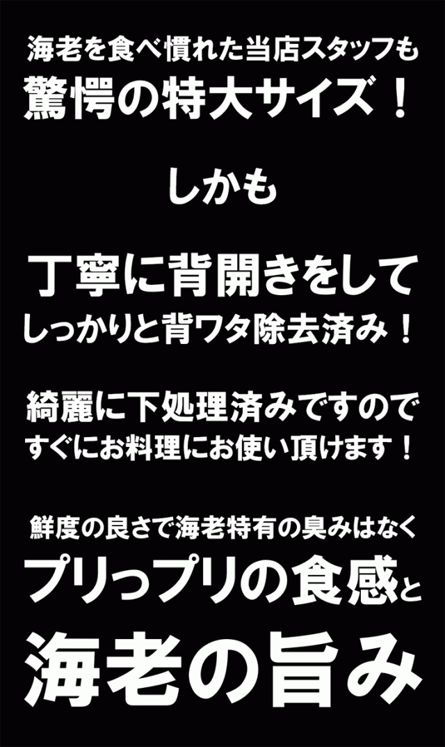原材料名:ブラックタイガーエビ(養殖)、食塩/リン酸塩