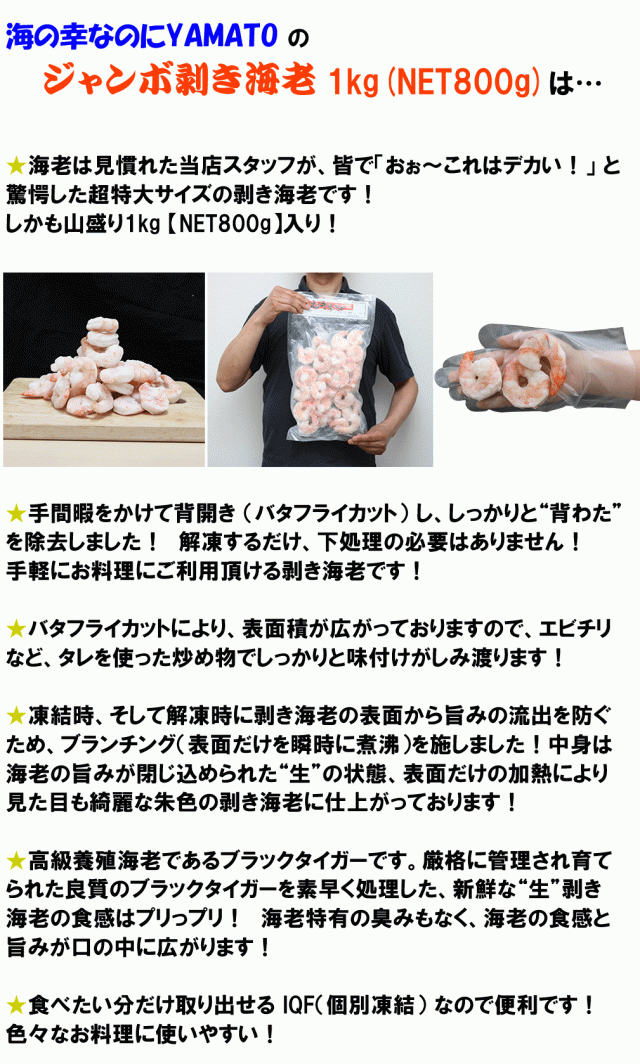 驚愕の特大サイズ ジャンボ剥き海老 1kg(NET800g)約 32尾入り えび エビ おつまみ エビチリ エビマヨ 永遠の海老 冷凍食品