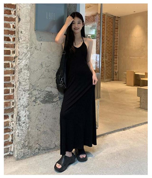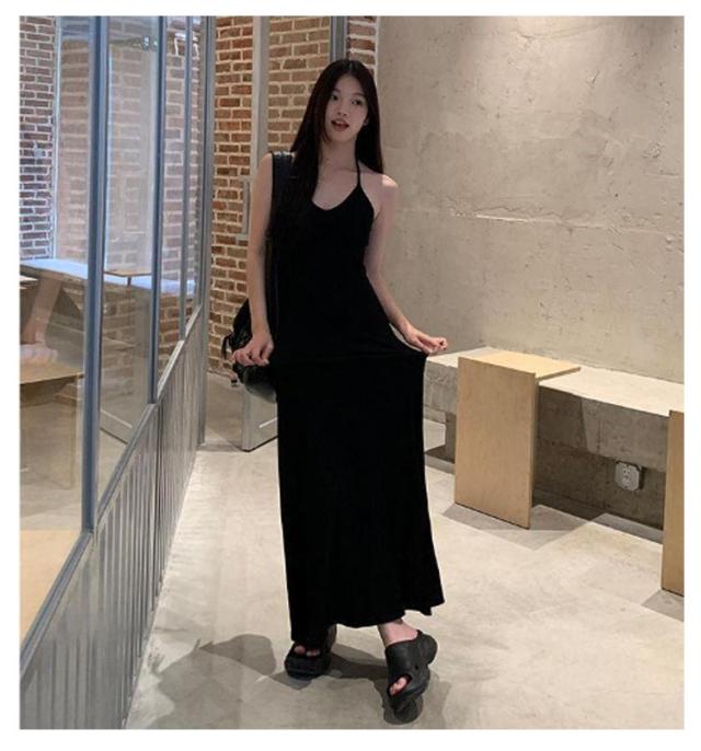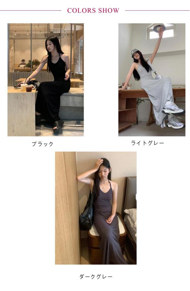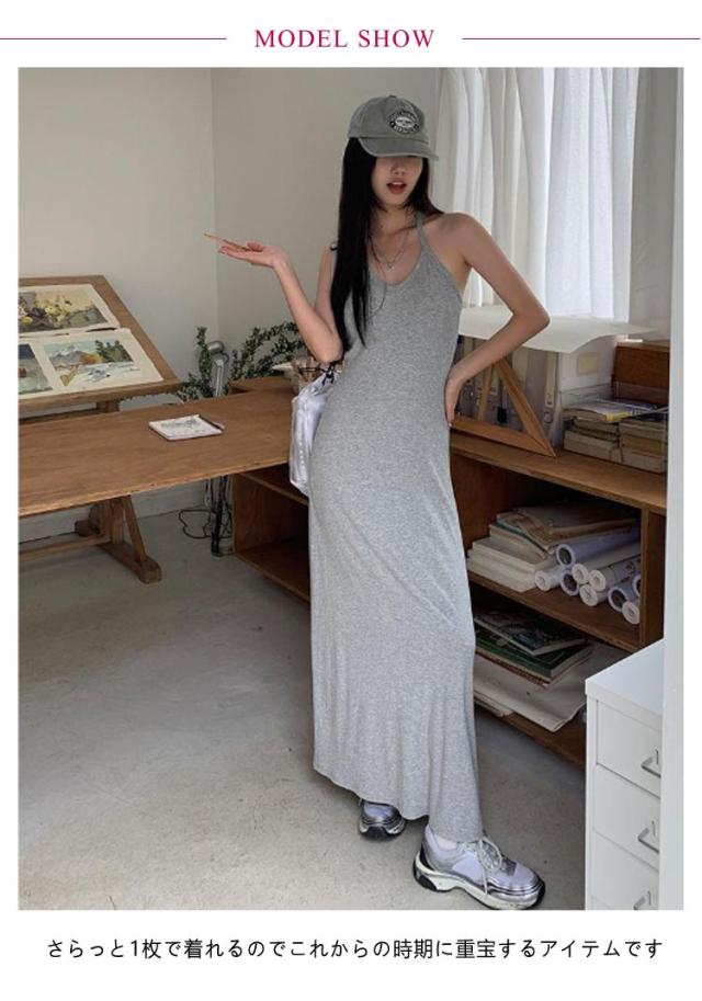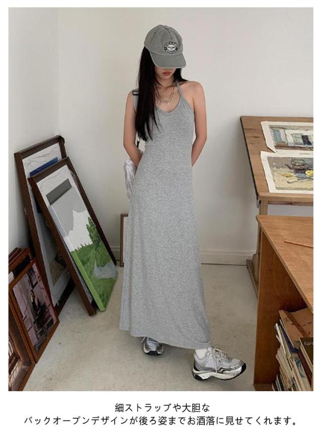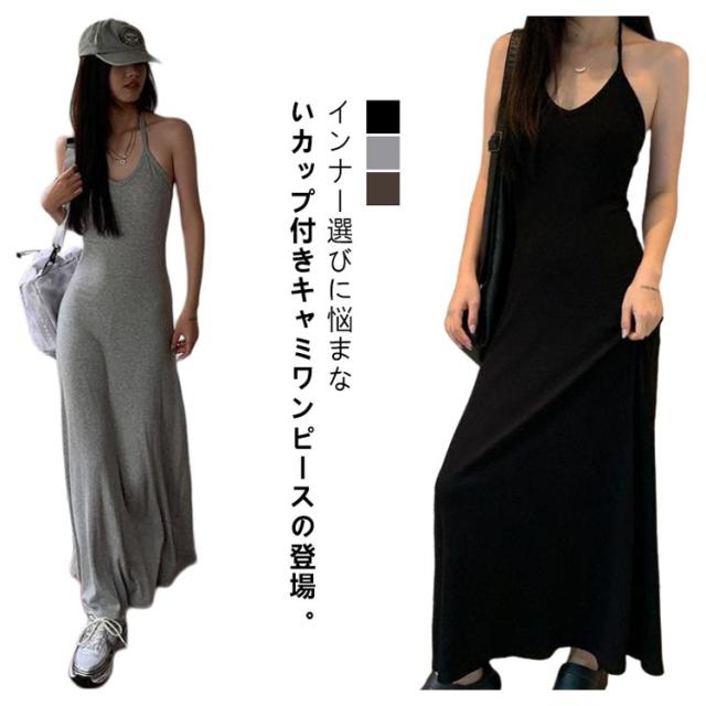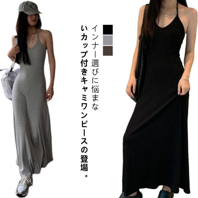 ホルターネック キャミワンピ バックオープン ホルターネック カップ付き レディース ワンピース ロング マキシ ロングワンピース インナー キャミソール ノースリーブ マキシ丈 カップイン 細ストラップ Aライン ストレッチ