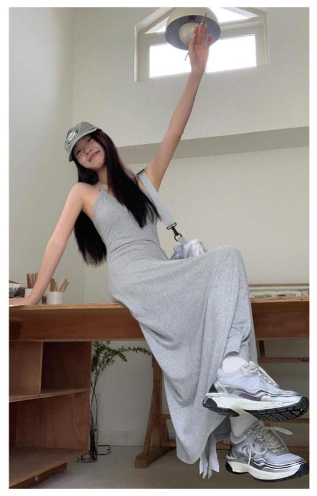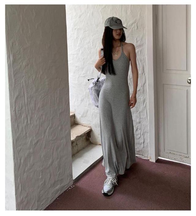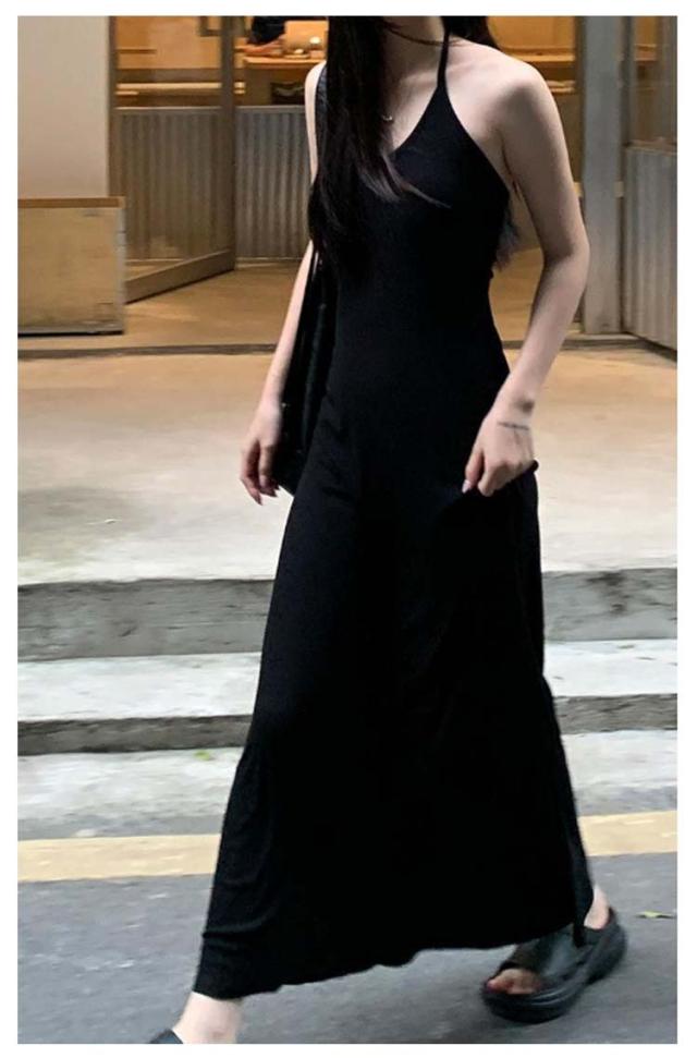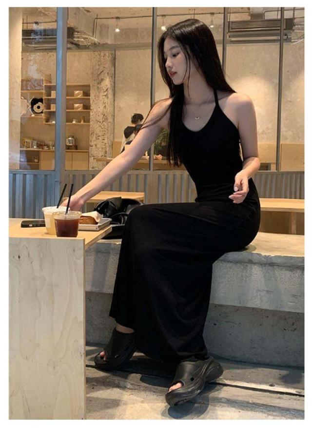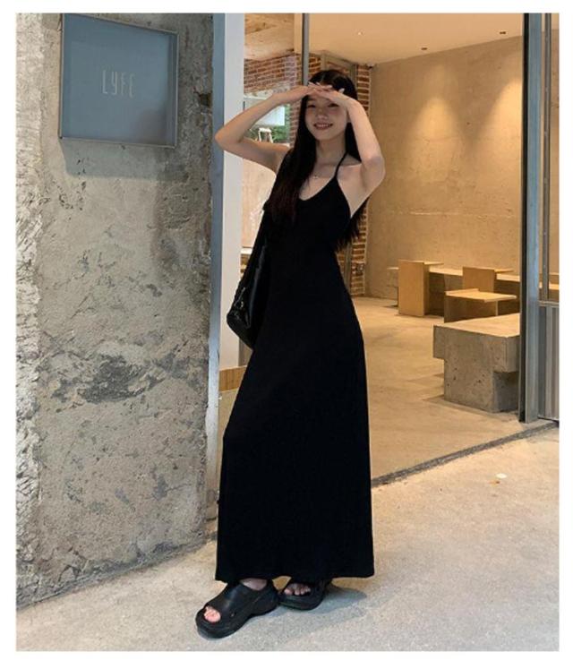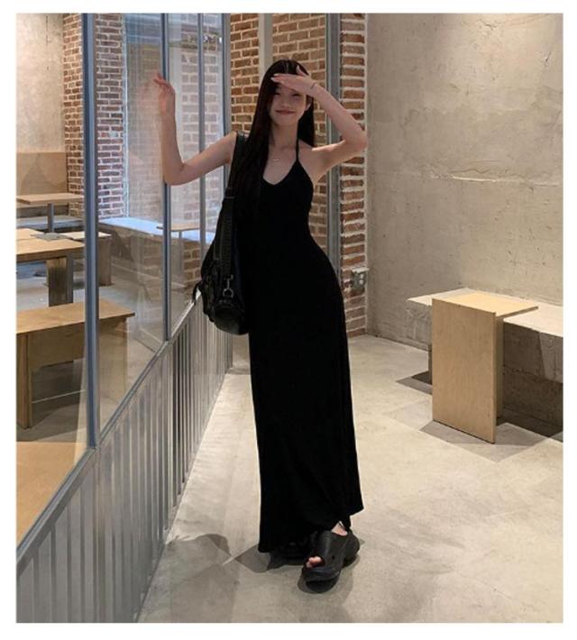 ホルターネック キャミワンピ バックオープン ホルターネック カップ付き レディース ワンピース ロング マキシ ロングワンピース インナー キャミソール ノースリーブ マキシ丈 カップイン 細ストラップ Aライン ストレッチ
