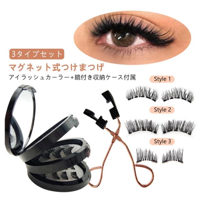 繰り返し使える ミラー 【3タイプセット】 【3タイプセット】 3D ボリューム 磁石 接着剤不要 マグネット式 アイラッシュ つけまつげ ケース 付き 収納 便利 マグネット つけまつ毛 まつげ 磁石まつ毛 束感まつ毛