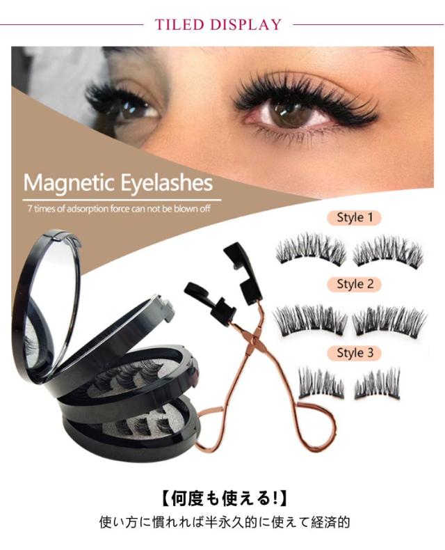 | 接着剤不要!アイライナー不要! ワンタッチで操作可能密着! マグネットでピタッと密着! マグネット式つけまつげ【3タイプセット】 アイラッシュカーラー+鏡付き収納ケース付属 <ポイント> 1.【何度も使える!】 使い方に慣れれば半永久的に使えて経済的 2.【上下から挟むだけ!】 自分のまつ毛をサンドするだけ!手もノリで汚れません! 3.【カスタマイズできる!】 磁石部分もカットでき、長さや幅をお好みで調整できます! 4.【取り外しも簡単!】 指でスライドするだけ。自分のまつ毛も抜けません! 1.磁気アイライナーには超微細な磁性粒子が含まれているため、接着剤不要で、直接接着ことができます。 2.いつでもどこでもまつげをつけたり取り外したりすることができます。朝にメイクアッププロセス時間を大幅に簡素化します。 3.とても軽いつけ心地で、毎日の日常やちょっとオシャレにドレスアップのメイクにも対応◎ 4.繰り返し使える体重性もありコスパも良く、個包装のケースに入っているので、衛生的に保管できます。ポーチに入れて持ち運びもOK! 5.違和感やチクチク感を改善スッとまぶたに馴染むつけ心地。刺激がなく、使いやすい、妊婦さんも使えるつけまつげ。 6.このセットにはまつげカーラーも含まれており、自然なまつげのカールとリフトを強化し、磁気まつげと組み合わせると、よりドラマチックでボリュームのある外観を作成します。 | |