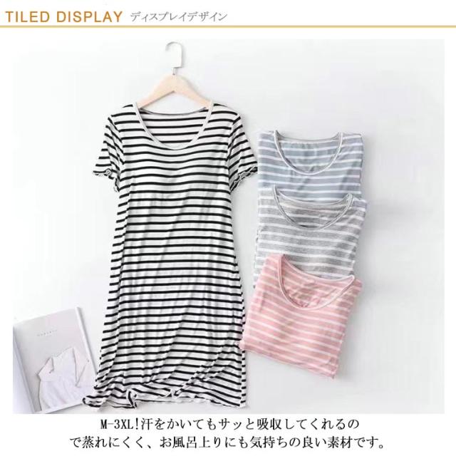 | M-3XL!汗をかいてもサッと吸収してくれるので蒸れにくく、お風呂上りにも気持ちの良い素材です。 肌触りが柔らかく気持ち良い生地で、吸汗性にも優れており、 伸縮性あり& 速乾性あり&カップ付きワンピース。 シンプルだけど女性らしいシルエットを描いてくれます!リラクシーな着心地が、こなれ感を演出してくれます。 部屋着として、パジャマとして1枚は持っていたいラクラクワンピース。 ルームウェアはもちろん、ちょっとしたお出かけにもお使いいただけます。 | |
