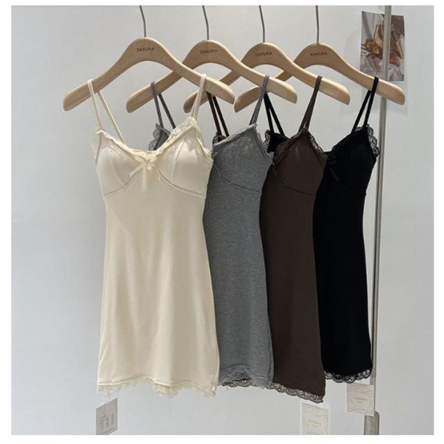 キャミワンピ ブラカップ付き インナードレス ワンピース 透け防止 スリップ ブラトップインナー ワンピース カップ付き ルームウェア ペチコート 美シルエット 夏 キャミ 部屋着 ナイトブラ一体型 送料無料