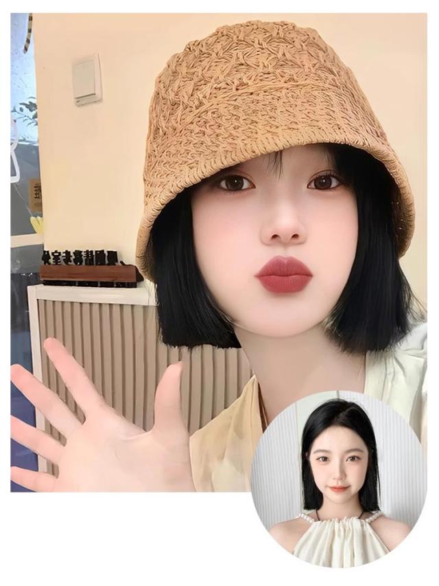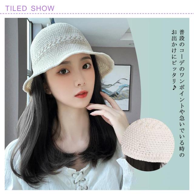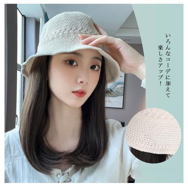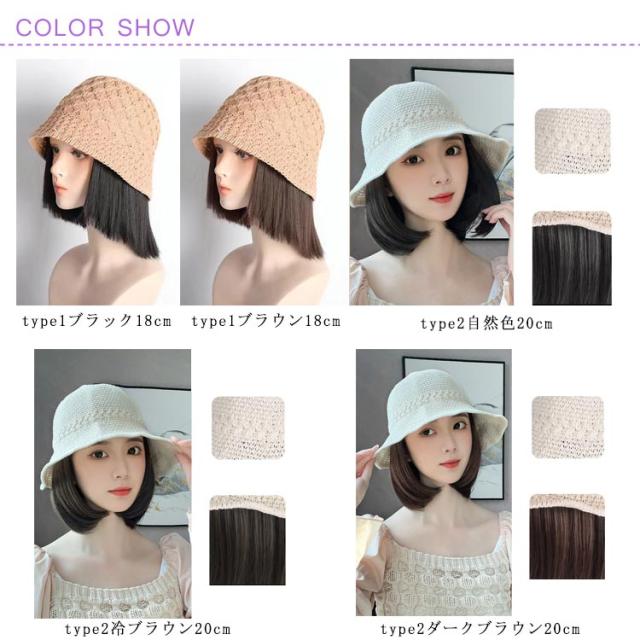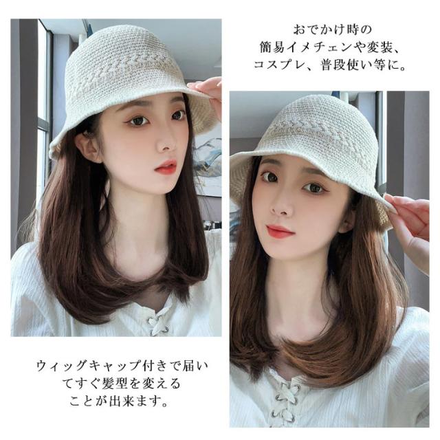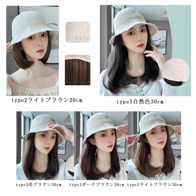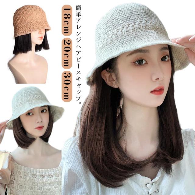 毛付き帽子 30cm ボブ ストレート ウィッグ付き 鎖骨髪 20cm 帽子ウィッグ 春夏 18cm ウィッグ付き帽子 かつら付き 髪付き 帽子ウィッグ 通気性 日よけ 紫外線対策