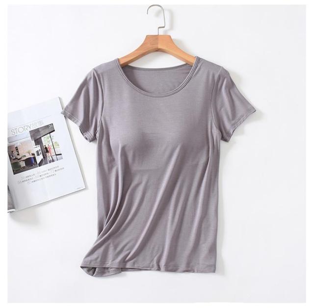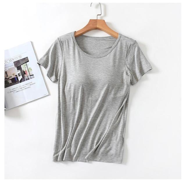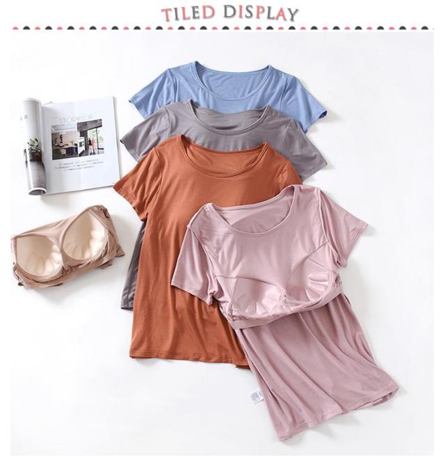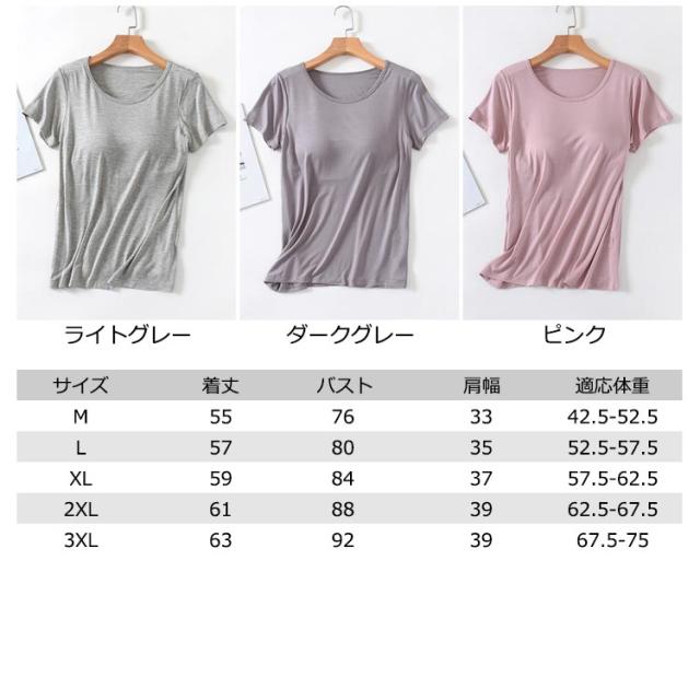 ゴムなし カップ付きTシャツ 半袖 ナイトブラ ナイトウェア 部屋着 インナー パット付半袖Tシャツ カップ付き レディース 柔らかい ルームウェア ラウンドネック アンダーフリー 大きいサイズ tシャツ カップ付きTシャツ 無地