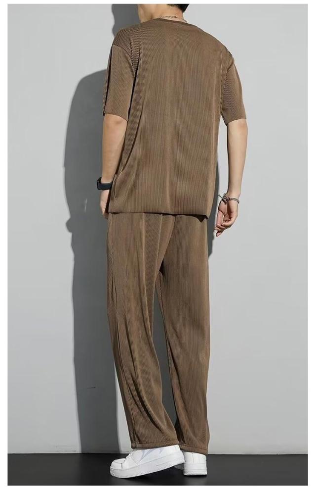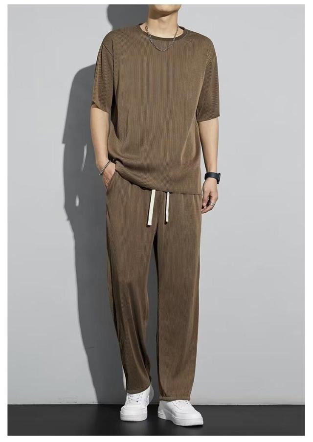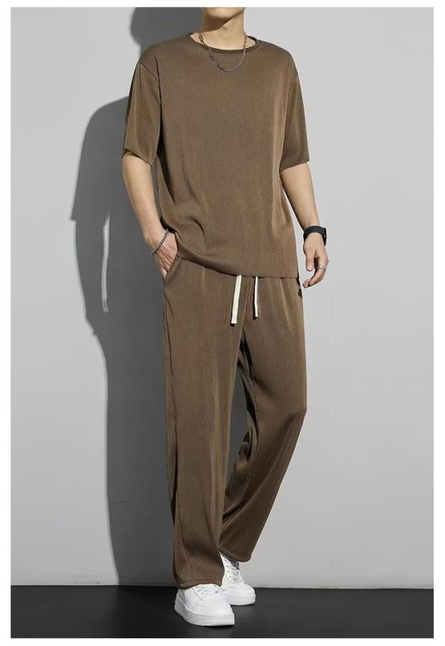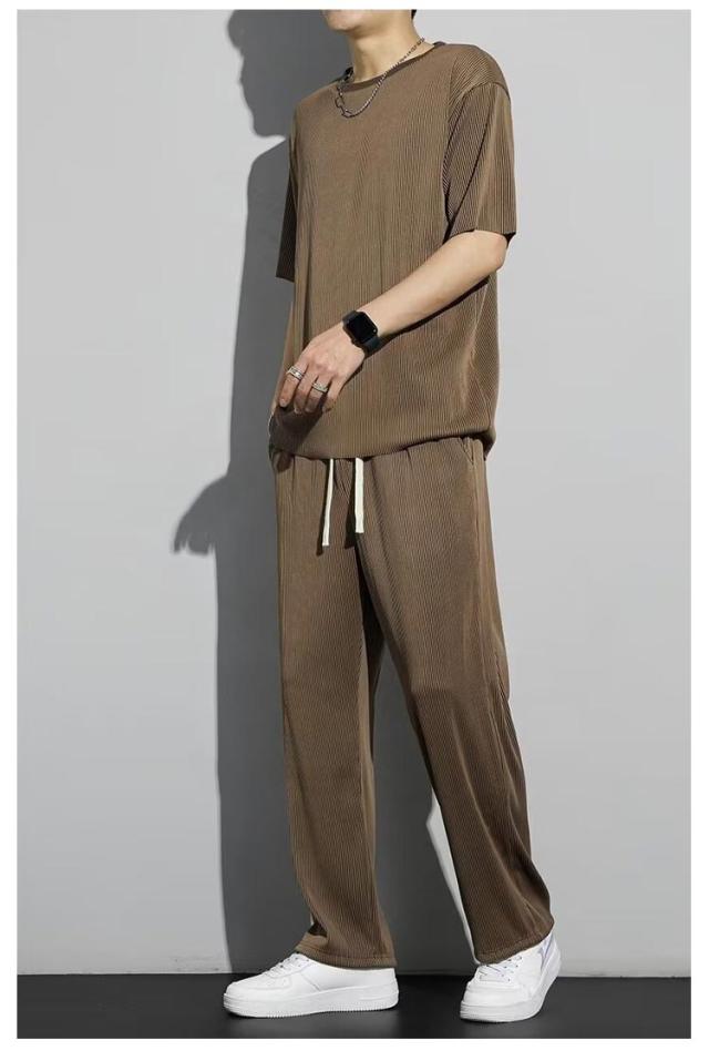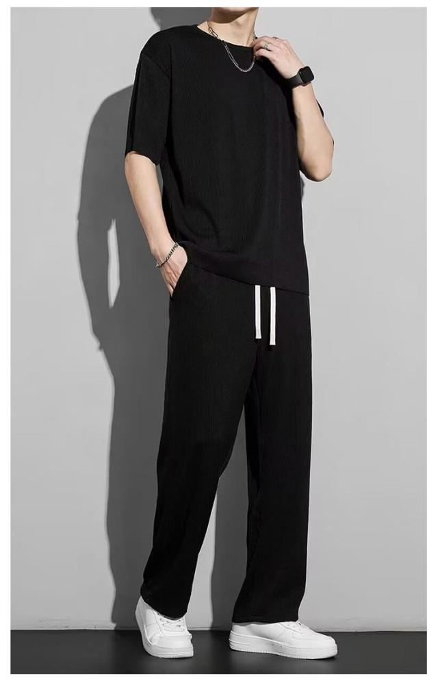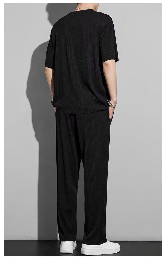 2点セット アイスシルク ロングパンツ ルームウェア ロング上下セット アイスシルク Tシャツ メンズ トップス セットアップ スウェット ジャージ カジュアル 半袖 ゆったり 大きサイズ 夏 ストレッチ 通気性 涼しい カジュアル 柔らかい 接触冷感